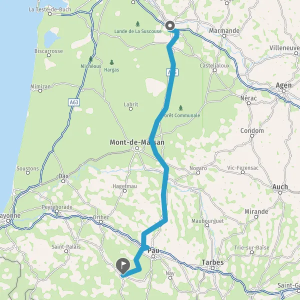 Prendre à droite et rejoindre A65. Continuer sur 149 kilomètres