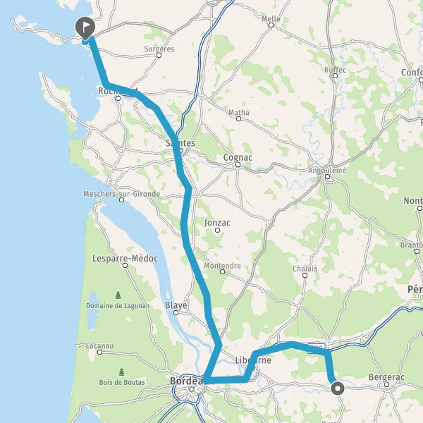 Continuer et rejoindre A837 E602. Continuer sur 34 kilomètres