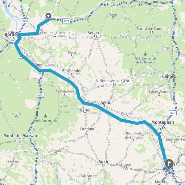 Prendre à gauche et rejoindre A62 E72. Continuer sur 224 kilomètres