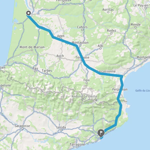 Prendre à gauche et rejoindre A62 E72. Continuer sur 224 kilomètres
