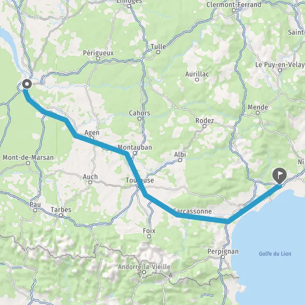 Prendre à gauche et rejoindre A62 E72. Continuer sur 224 kilomètres
