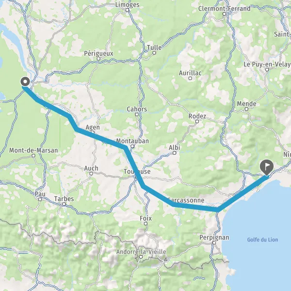 Prendre à gauche et rejoindre A62 E72. Continuer sur 224 kilomètres