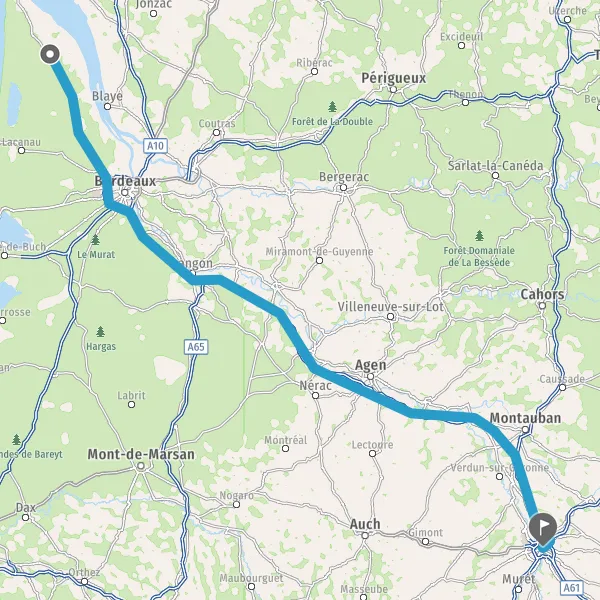 Prendre à gauche et rejoindre A62 E72. Continuer sur 224 kilomètres