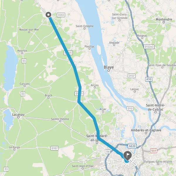 Au rond-point, prendre la 2ème sortie sur Avenue du Taillan-Médoc et continuer sur 1,6 kilomètre