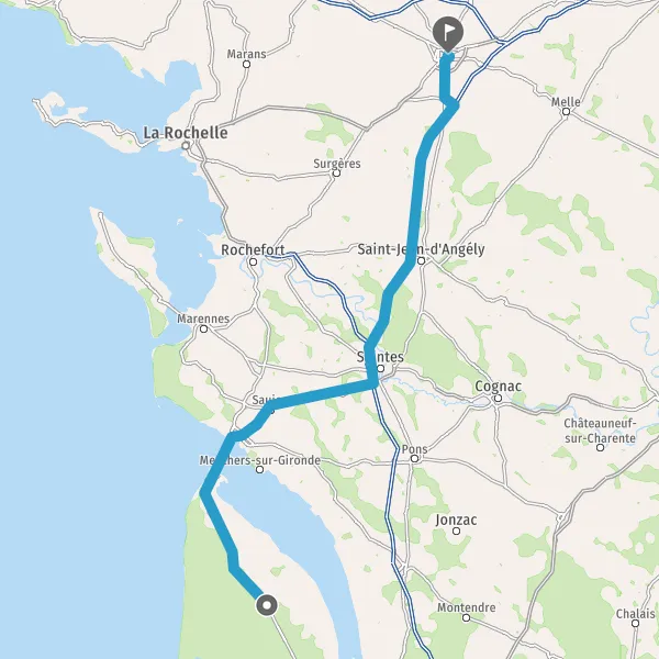 Au rond-point, prendre la 2ème sortie sur N150 (Route de Royan) et continuer sur 4,6 kilomètres