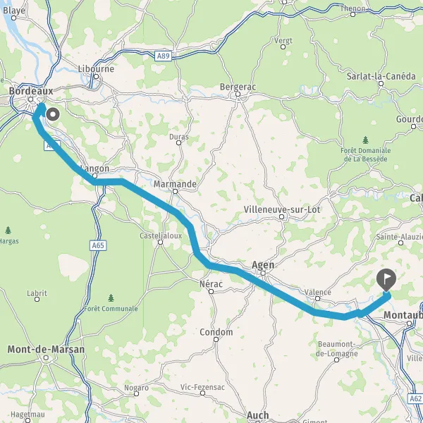 Prendre à gauche et rejoindre A62 E72. Continuer sur 168 kilomètres