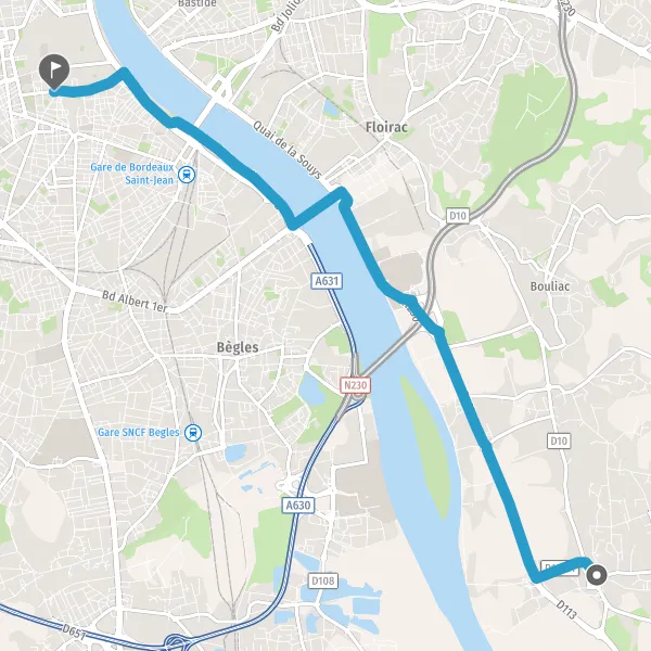 Avec le mode voiture, vous pouvez configurer vos options (type de véhicule, autoroute ou non, péage ou non, distance la plus courte), tout en ayant accès aux infos de circulation grâce à notre service d'info-trafic en temps réel. Ainsi faites des économies sur le coût ou la durée de votre voyage, en trouvant le trajet Latresne Bordeaux adapté à vos besoins.