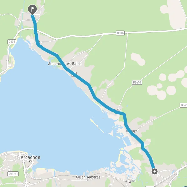 Au rond-point, prendre la 1ère sortie sur D3 (Avenue de Taussat) et continuer sur 2,2 kilomètres