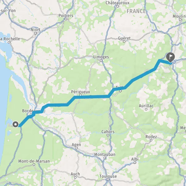 Prendre à gauche et rejoindre A63 E5 E70. Continuer sur 26 kilomètres