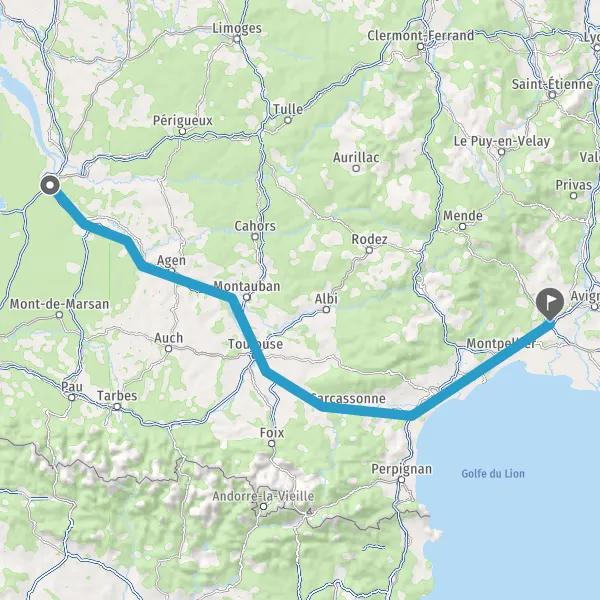 Prendre à gauche et rejoindre A62 E72. Continuer sur 224 kilomètres