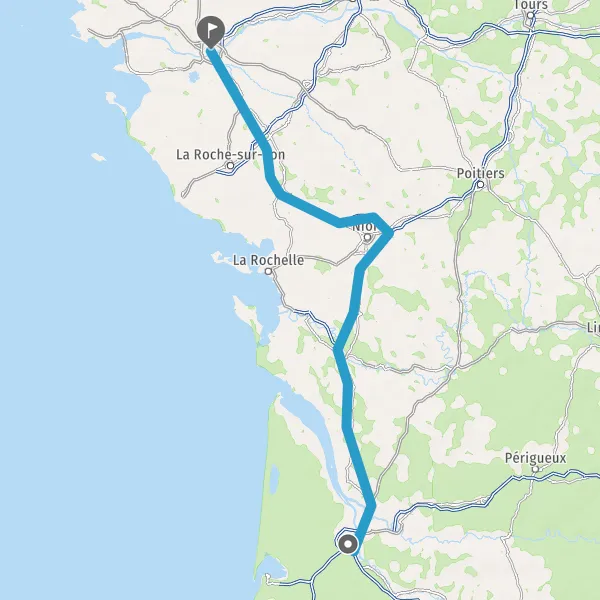 Prendre à droite et rejoindre A83. Continuer sur 150 kilomètres