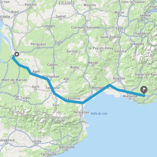 Prendre à gauche et rejoindre A62 E72. Continuer sur 224 kilomètres