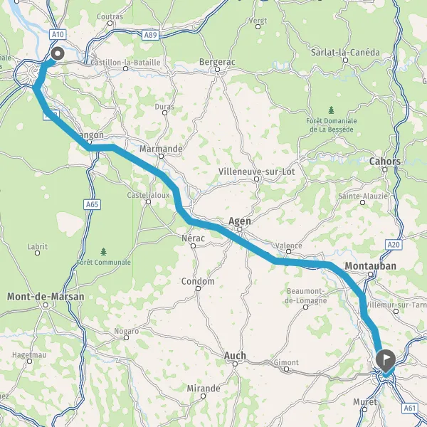 Prendre à gauche et rejoindre A62 E72. Continuer sur 224 kilomètres