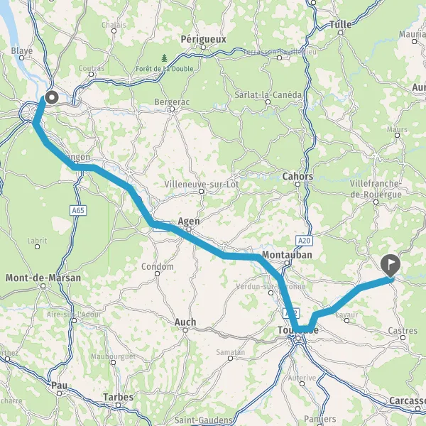 Prendre à gauche et rejoindre A62 E72. Continuer sur 224 kilomètres