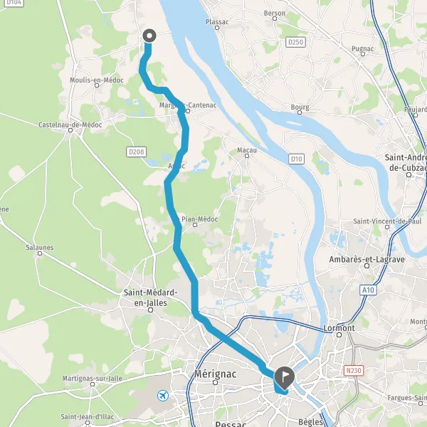 Au rond-point, prendre la 2ème sortie sur D2 (Route de Pauillac) et continuer sur 210 mètres