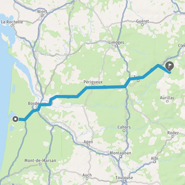 Prendre à gauche et rejoindre A63 E5 E70. Continuer sur 26 kilomètres