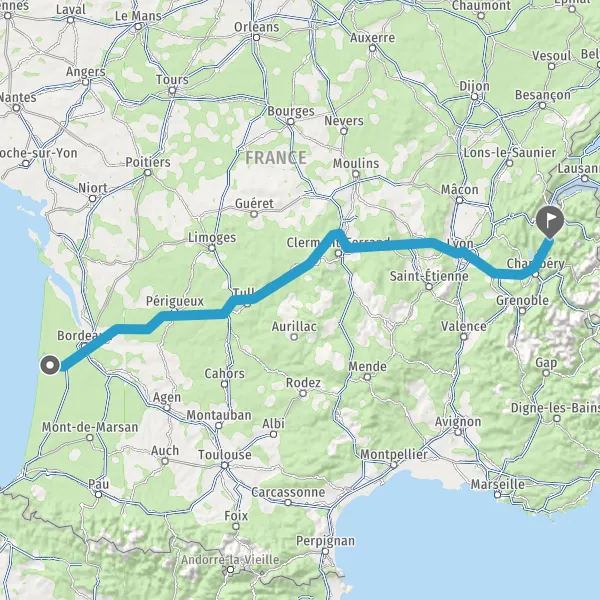 Prendre à gauche et rejoindre A63 E5 E70. Continuer sur 26 kilomètres