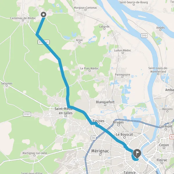 Au rond-point, prendre la 2ème sortie sur Avenue du Taillan-Médoc et continuer sur 1,6 kilomètre