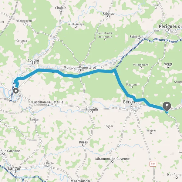 Tourner légèrement à droite sur D936 (Avenue du Périgord) et continuer sur 8,2 kilomètres