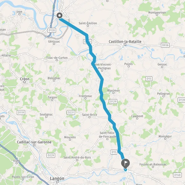 Tourner à droite sur D670 (Route de La Réole) et continuer sur 11 kilomètres