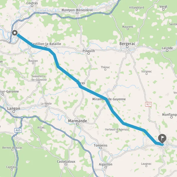 Tourner à droite sur D15 (Route de Duras) et continuer sur 3,6 kilomètres