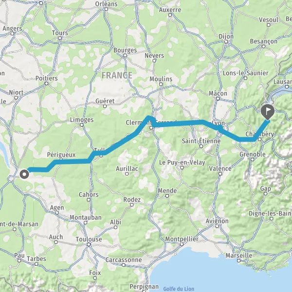 Prendre à droite et rejoindre A89 E70. Continuer sur 156 kilomètres