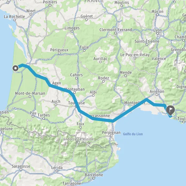 Prendre à gauche et rejoindre A62 E72. Continuer sur 224 kilomètres