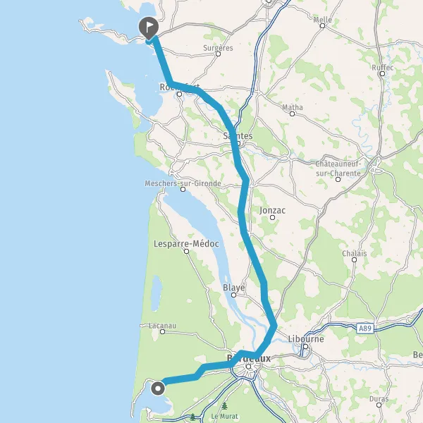 Continuer et rejoindre A837 E602. Continuer sur 34 kilomètres