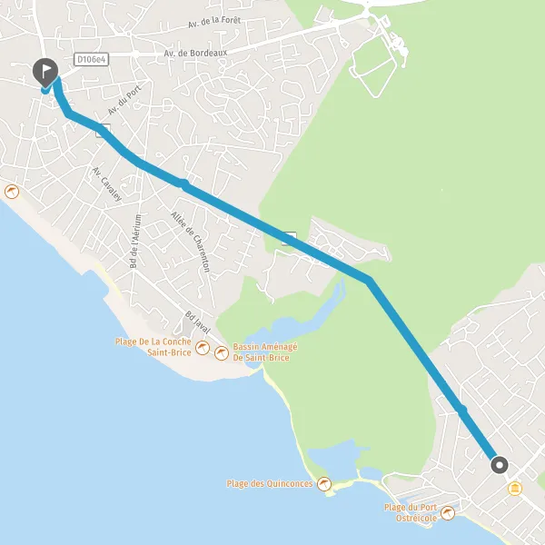 • Tourner légèrement à droite sur Avenue de la Plage et continuer sur 5 mètres