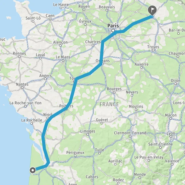 Continuer E5 (L'Aquitaine) sur 427 kilomètres