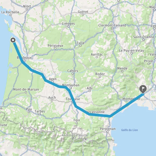 Prendre à gauche et rejoindre A62 E72. Continuer sur 224 kilomètres