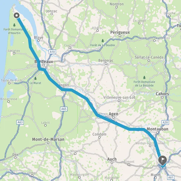 Prendre à gauche et rejoindre A62 E72. Continuer sur 224 kilomètres