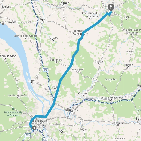 Prendre à droite et rejoindre Rue de Montmoreau. Continuer sur 120 mètres