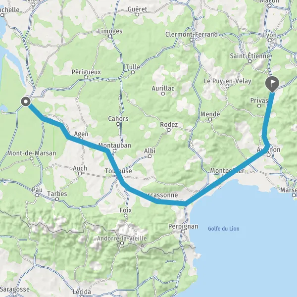 Prendre à gauche et rejoindre A62 E72. Continuer sur 224 kilomètres