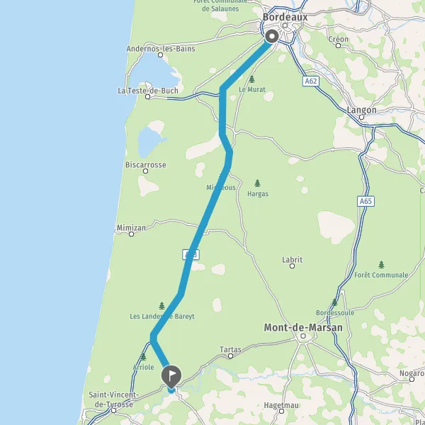 Prendre à droite et rejoindre A63 E70 E5. Continuer sur 115 kilomètres