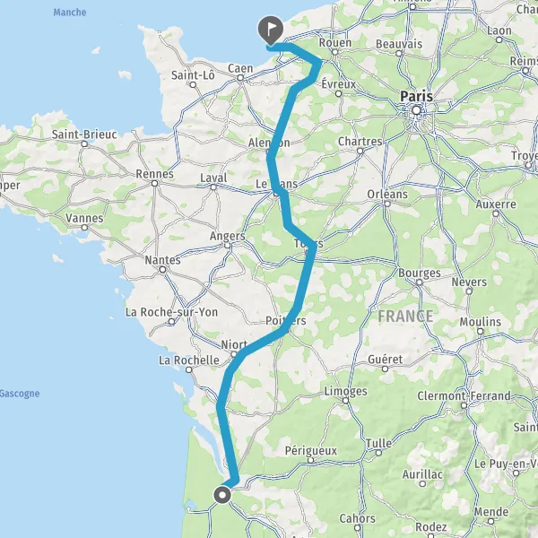 Continuer E5 (L'Aquitaine) sur 328 kilomètres