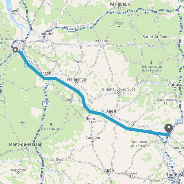 Prendre à gauche et rejoindre A62 E72. Continuer sur 168 kilomètres