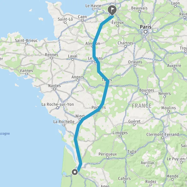 Continuer E5 (L'Aquitaine) sur 328 kilomètres