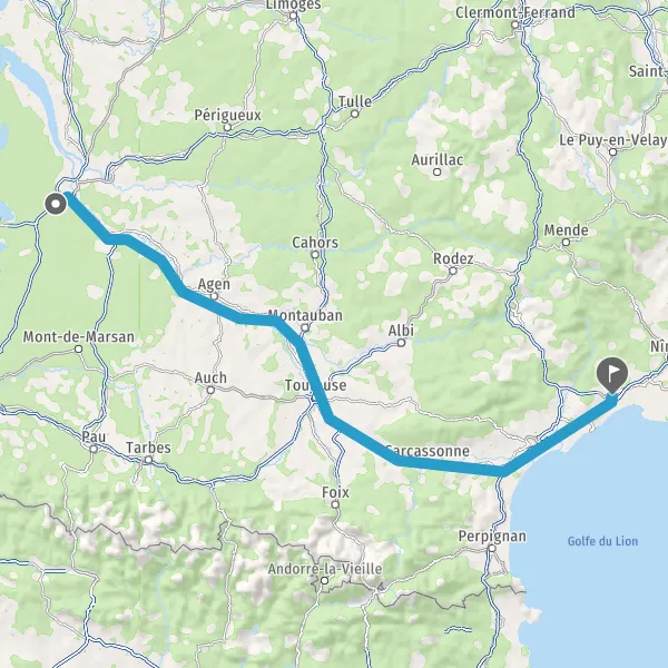 Prendre à gauche et rejoindre A62 E72. Continuer sur 224 kilomètres