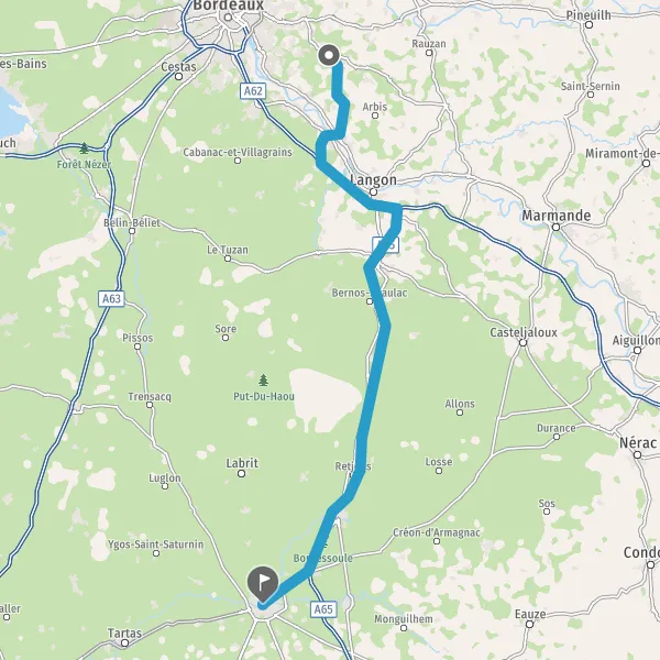 Prendre à droite et rejoindre A65. Continuer sur 70 kilomètres