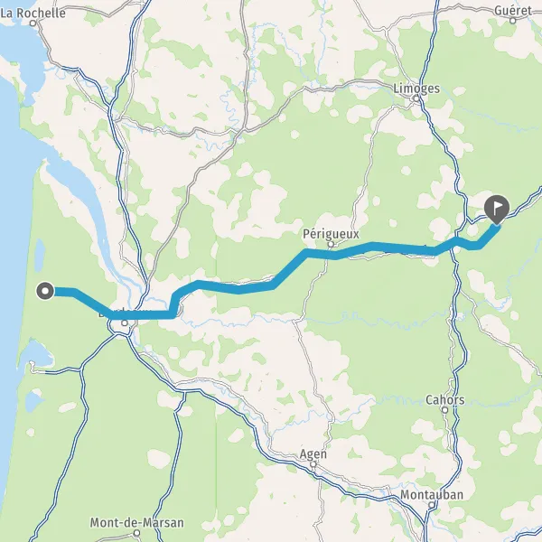 Au rond-point, prendre la 1ère sortie sur D6 (Avenue de Bordeaux) et continuer sur 16 kilomètres