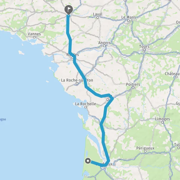 Prendre à droite et rejoindre A83. Continuer sur 150 kilomètres