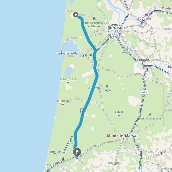 Prendre à droite et rejoindre A63 E5 E70. Continuer sur 82 kilomètres