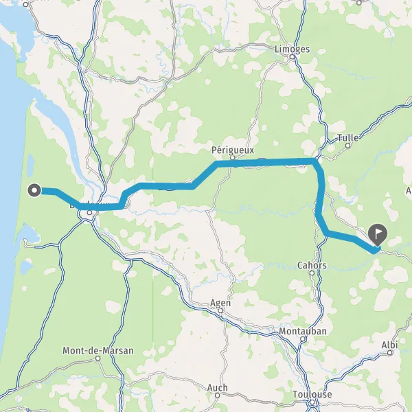 Au rond-point, prendre la 1ère sortie sur D6 (Avenue de Bordeaux) et continuer sur 16 kilomètres