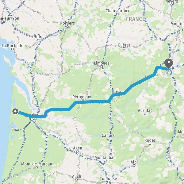 Au rond-point, prendre la 1ère sortie sur D6 (Avenue de Bordeaux) et continuer sur 16 kilomètres