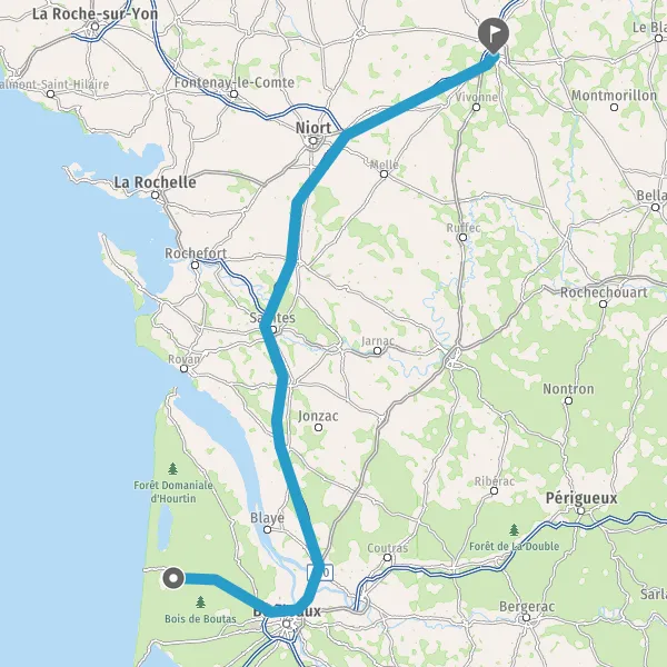 Au rond-point, prendre la 1ère sortie sur D6 (Avenue de Bordeaux) et continuer sur 16 kilomètres
