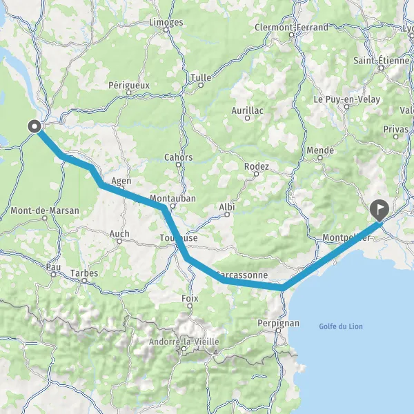 Prendre à gauche et rejoindre A62 E72. Continuer sur 224 kilomètres