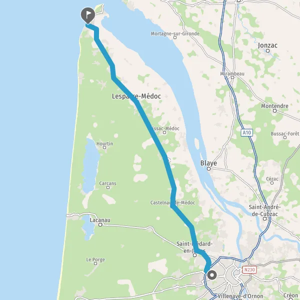 Au rond-point, prendre la 2ème sortie sur D1215 (Route de Lacanau) et continuer sur 1,4 kilomètre