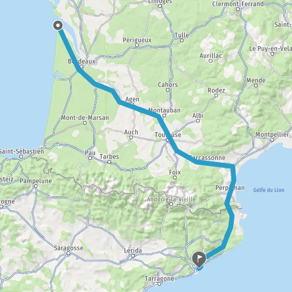 Prendre à gauche et rejoindre A62 E72. Continuer sur 224 kilomètres
