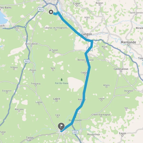Prendre à droite et rejoindre A65. Continuer sur 70 kilomètres